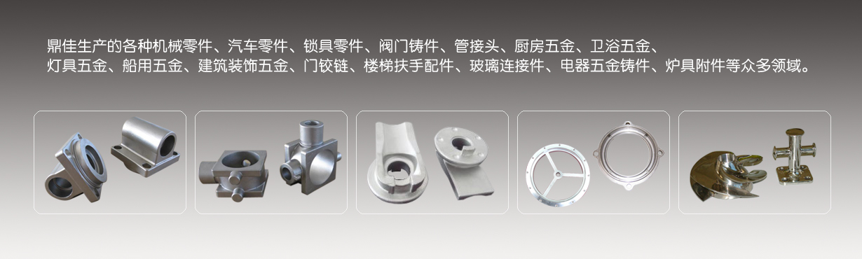 各種機械零件、縫制零件、紡織配件、汽車零件、鎖具零件、閥門零件、管接頭、五金工具、廚房五金、衛(wèi)浴五金、燈具五金、船用五金、建筑裝飾五金、門鉸鏈、樓梯扶手配件、電器五金鑄件、爐具附件等眾多領(lǐng)域。